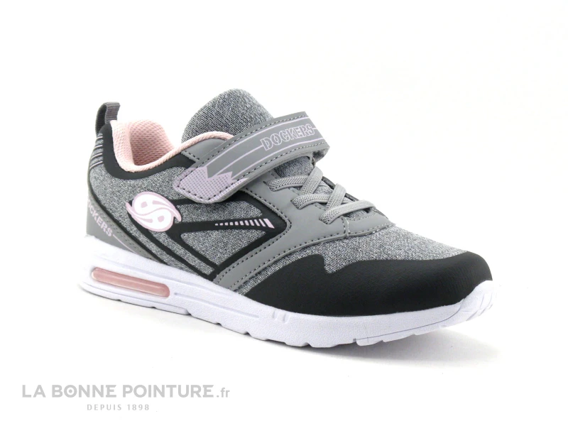 Prix mini, praticité et look sympa pour ces jolies baskets fille grises et roses Dockers 48BT601 !