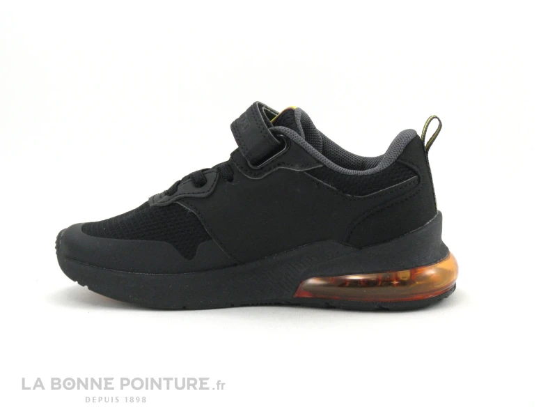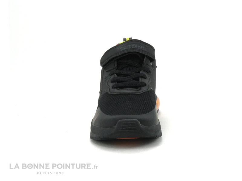 Ces baskets enfant Kappa Kid sont en en textile et matières synthétiques noirs, avec un peu de jaune et d’orange.