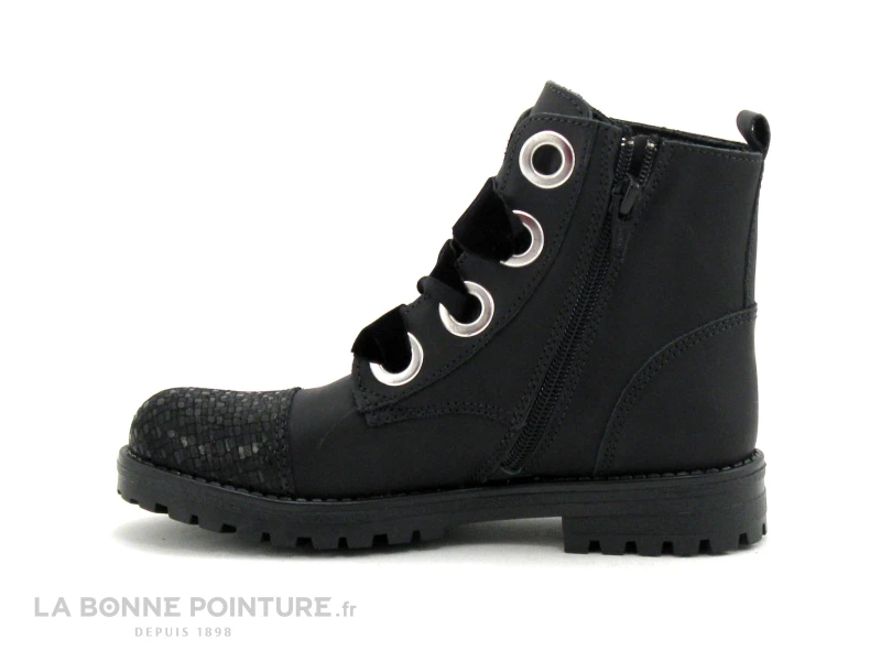 Un zip latéral permet de fermer facilement cette paire de boots noires fille.